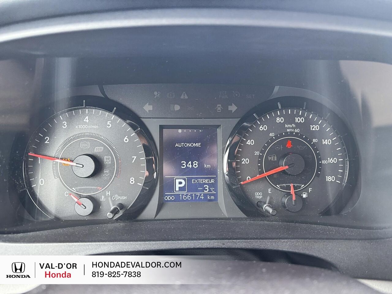 Instruments -comprend : indicateur de vitesse. odomètre. température du liquide de refroidissement du moteur. tachymètre. compteur journalier et ordinateur de voyage